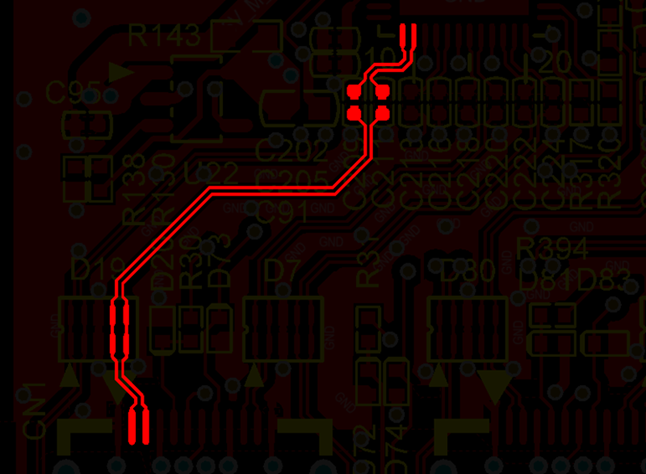 5. Due to factors such as pin distribution, vias, and trace space, the differential line length is easy to mismatch, and once the line length is not matched, the timing will be shifted, and common-mode interference will be introduced, reducing the signal quality. Therefore, it is necessary to compensate for the mismatch of the difference pair, so that the line length matches, and the length difference is usually controlled within 5mil.