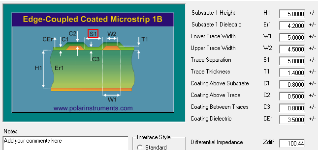 The impedance calculator used in the factory is Polar Si9000, the parameters are as follows:
